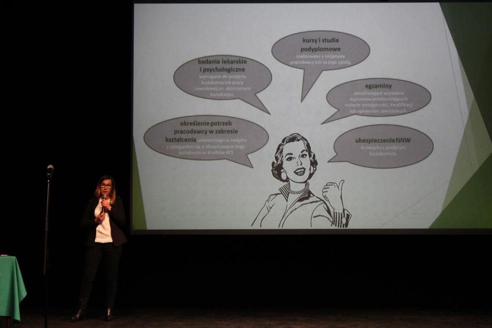 Na zakończenie konferencji Pani Marta Swajda z Powiatowego Urzędu Pracy w Siemiatyczach zaprezentowała informacje dotyczące Krajowego Funduszu Szkoleniowego - doświadczenia w realizacji działań oraz priorytety wydatkowania i wysokość środków KFS na rok 2018.