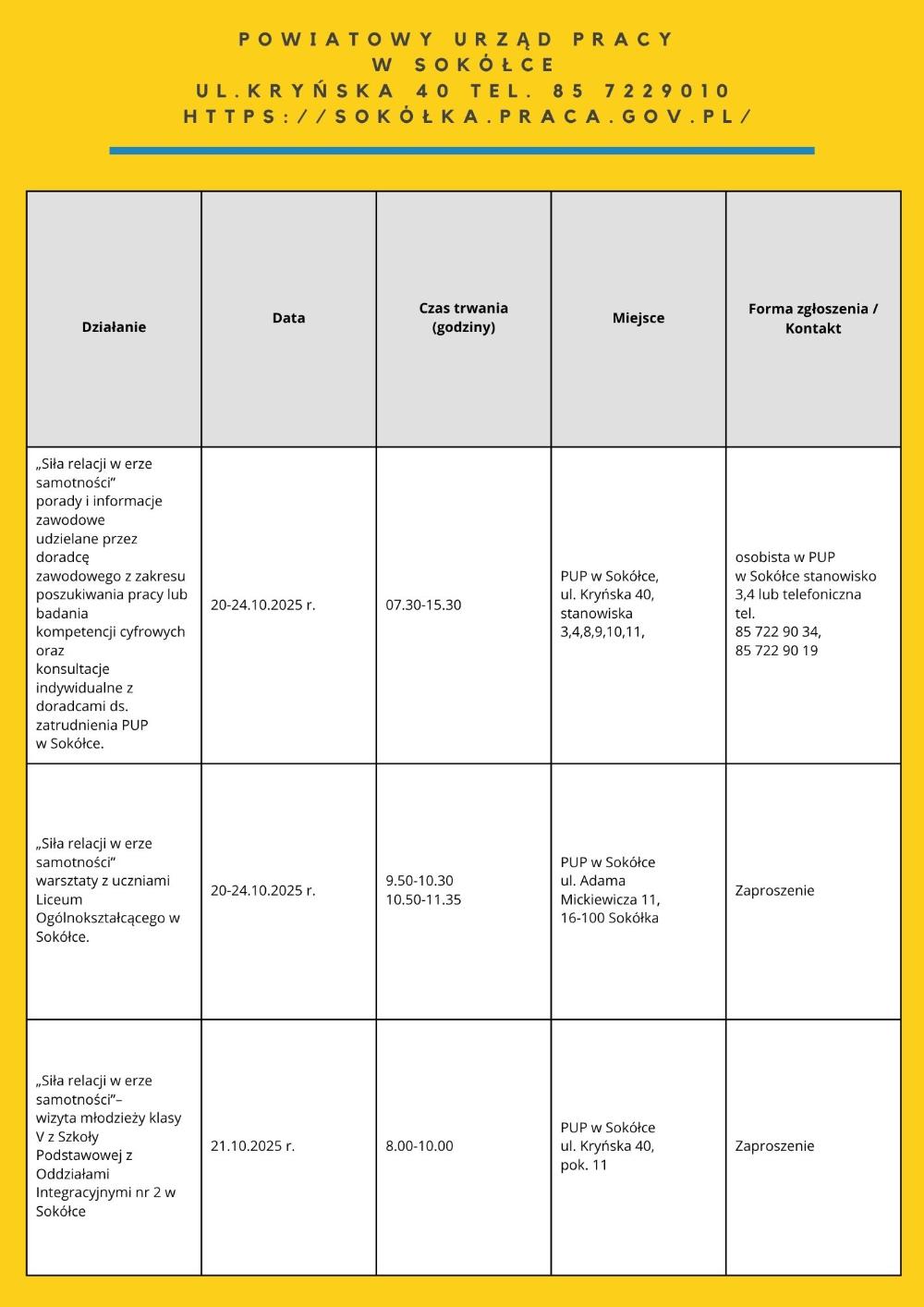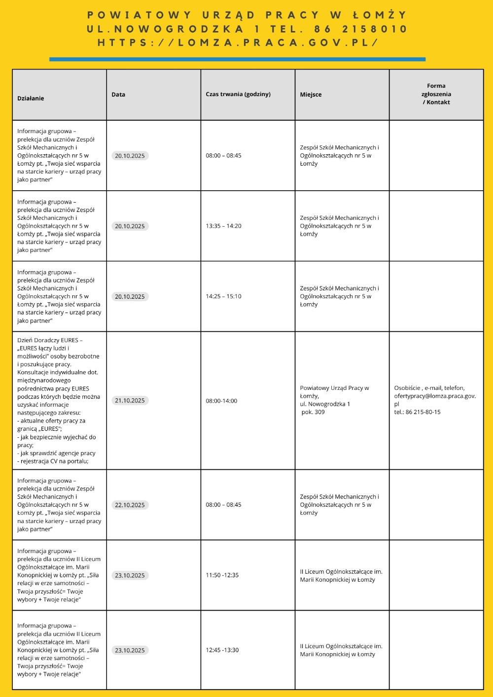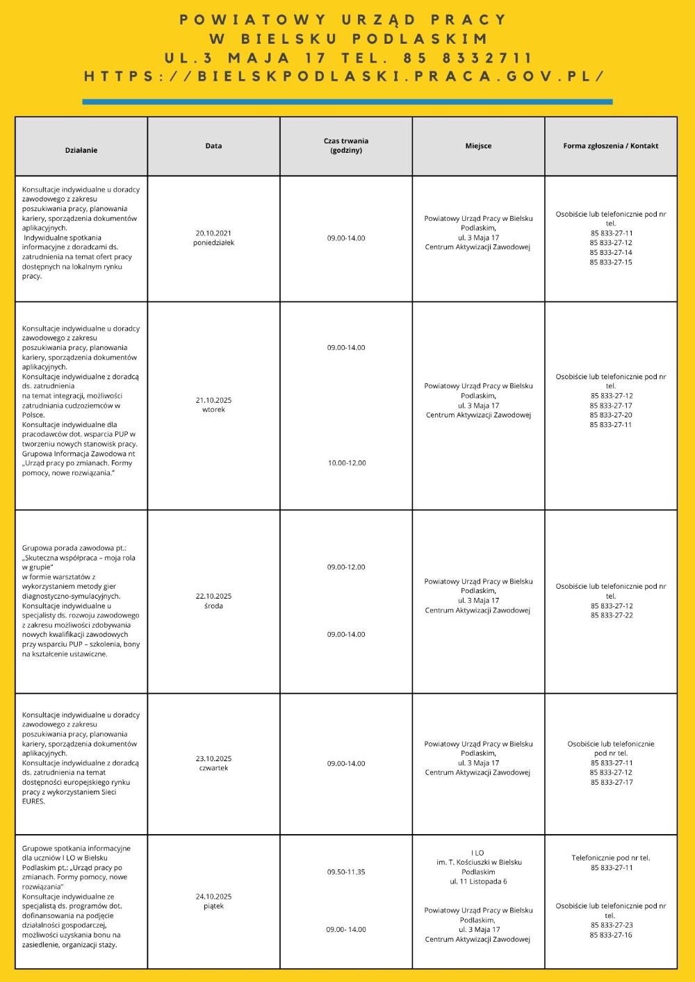 • „Moja droga do pracy” – 21.10.2025 – 7 os. – PUP Filia w Łapach